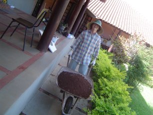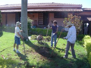 precisava ver os canteiros antes das galinhas darem uma limpada